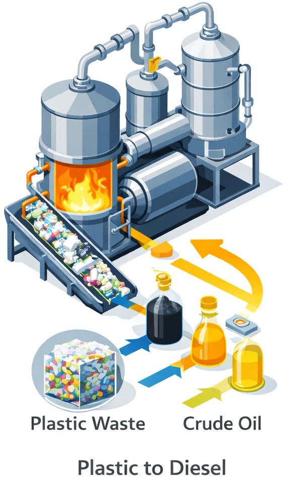 Thermochemische Umwandlung von Kunststoffabfällen zur Erzeugung flüssiger Kohlenwasserstoffprodukte. Zielprodukt: Diesel-ähnliche Fraktionen aus Kunststoff Inklusive Gas-/Wärmerückgewinnung, Kondensation, Produktaufbereitung und Abgasbehandlung.