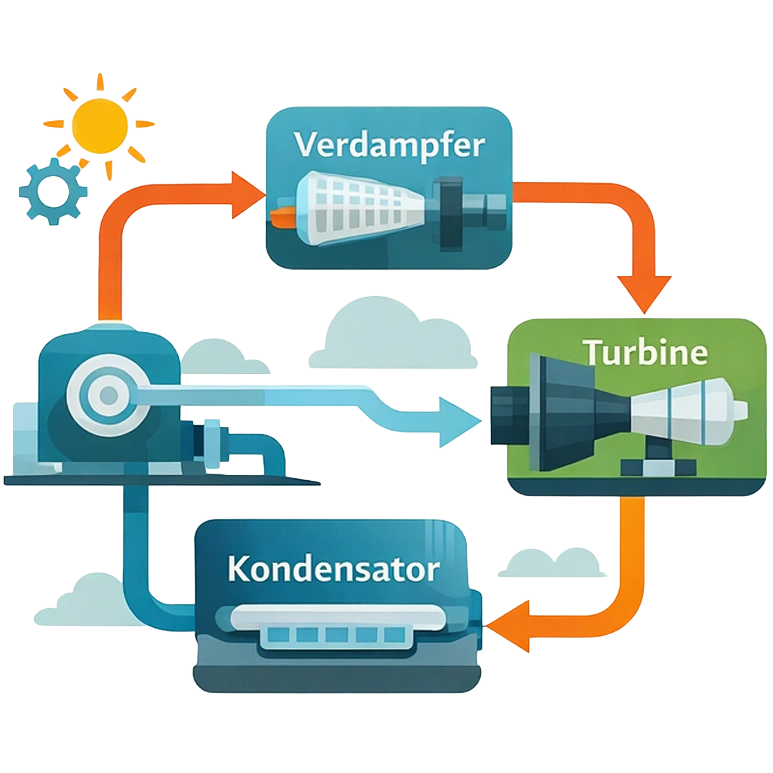 Thermodynamische Auslegung und Integration von ORC-basierten Stromerzeugungssystemen zur Nutzung von Hochtemperatur-Abwärme.